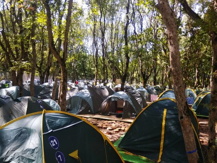Первым, что видит гость «Машука», когда входит на территорию лагеря — бесконечные ряды палаток. В каждую селят молодых людей обязательно из разных регионов, говорит один из кураторов форума Магомед Газиев. Таким образом, по его словам, в одной палатке могут жить чеченец, дагестанец и москвич.