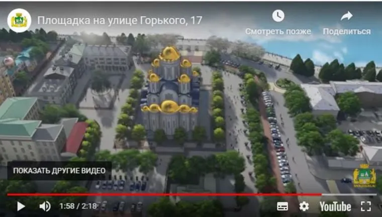Источник в мэрии уверен, что после опроса документы для храма утвердят до 1 января 2020 года. Он обращает внимание на другое: первые эскизы размещения храма выполнены без учета здания регионального управления Пенсионного фонда России