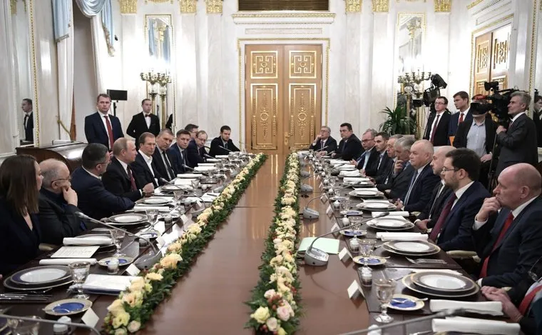 Виктор Шкулев на встрече в Кремле в левом ряду, слева от Владимира Путина