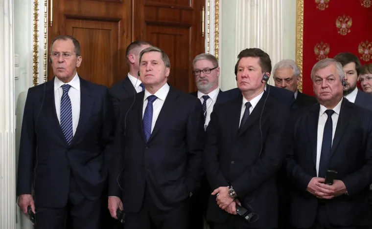 Участниками сегодняшних переговоров стали не только чиновники, но и бизнесмены: второй справа в первом ряду — председатель правления ПАО «Газпром» Алексей Миллер
