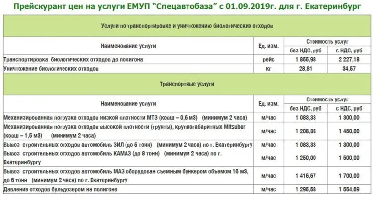 Прайс ЕМУП «Спецавтобаза» на прием строительного мусора. Возить отходы на нелегальную свалку гораздо выгодней