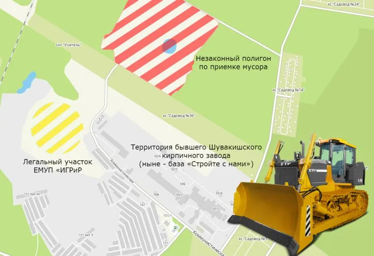 Оба полигона — бывшие карьеры Шувакишского кирпичного завода. Только один — легальный, где строительный мусор принимают официально, второй — незаконный