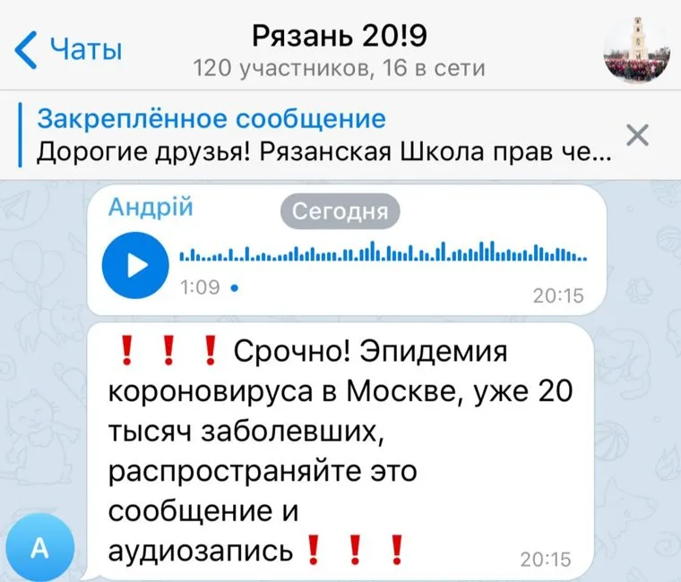 В распоряжение редакции попало две похожих записи голосового сообщения женщин, которые якобы предупреждают своих знакомых о массовых заболеваниях в столице. «В Москве 20 тысяч заболевших коронавирусом. Ходим в масках, бережем наших близких», — сообщает одна их них. Также автор сообщения предлагает запасаться продуктами. «Информация более, чем достоверная. В Италии передают о том, что у нас заболевшие, у нас не передают, чтобы мы эту гребаную Конституцию приняли», — говорит женщина.