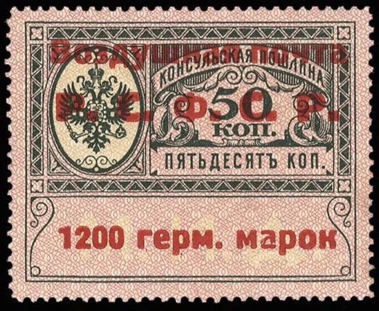 Сами по себе консульские марки не были редкостью, в отличие от конкретно «Консульского полтинника». Это марка консульской пошлины номиналом в 50 копеек с надпечаткой «Воздушная почта Р.С.Ф.С.Р. 1200 герм. марок». Это одна из самых редких почтовых марок РСФСР. По официальным данным, их было отпечатано не более 78 экземпляров. Сейчас ее стоимость не меньше 70 тысяч американских долларов, а в 2008 году марку купили на аукционе Cherrystone за 63 тыс 250 долларов США. Известны марки с фальшивыми надпечатками на подлинных марках, изготовленными в ущерб коллекционерам. Является одной из самых желанных и относительно доступных марок для коллекционеров международного уровня.
