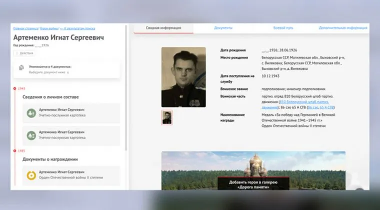 «По воспоминаниям родственников ветерана, помогать подполью в захваченной родной деревне Игнат Артеменко начал ещё в 1942-м», — пишет Life. По данным журналистов, в дальнейшем Артеменко стал бойцом 810-го партизанского полка и участвовал в освобождении от фашистов родной Могилевской области. В 1944 году он был призван в регулярную армию, в которой участвовал в форсировании Днепра.