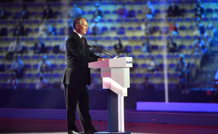 Путин 6 июля приехал в Кемеровскую область в честь 300-летия Кузбасса. Президент провел в регионе весь день: возложил цветы к монументу «Память шахтерам Кузбасса», осмотрел строящийся комплекс Сибирского кластера искусств, посетил Кемеровское президентское кадетское училище, а также выступил на торжественном вечере в ледовом дворце «Кузбасс». «Сердечно поздравляю вас с праздником в честь легендарного шахтерского края, в честь многих поколений тружеников, которые принесли Кузбассу поистине мировую известность, и, безусловно, в честь всех, кто живет и работает здесь сегодня», — обратился к слушателям Путин.