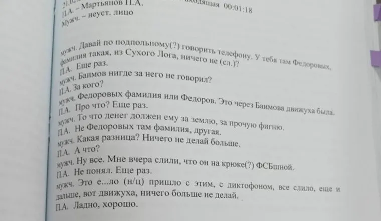 В соответствии с имеющимися документами, Павла Мартьянова прослушивали как минимум с февраля прошлого года. В один из дней того месяца мэру позвонил неизвестный мужчина и предупредил его о «ФСБ-шном крюке» и о том, что одна из деловых бесед чиновника была записана. Ключевым результатом контроля переговоров стало то, что оперативники обнаружили доказательства злоупотребления Мартьяновым служебным положением. Улики были добыты в кабинете Марины Сидоровой, где почти сразу после переговоров проведены выемки.