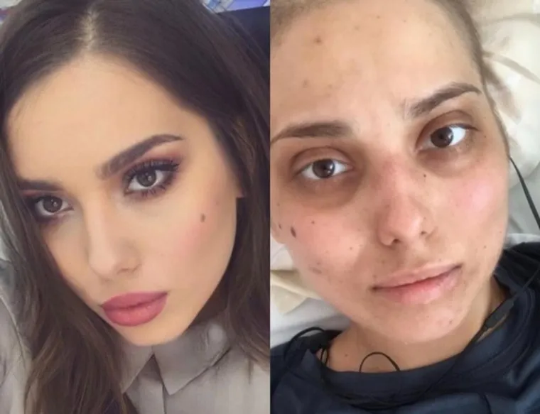 На первом фото Ольга Фарфанюк в самом начале лечения, на втором — во время прохождения химиотерапии. Эти фотографии поразили пользователей соцсетей.