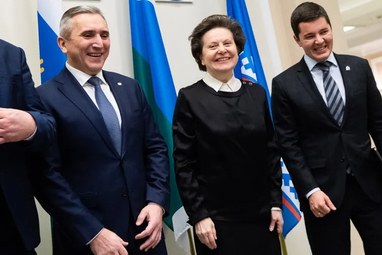 Благодаря поддержке глав ХМАО и ЯНАО (Наталья Комарова — в центре, Дмитрий Артюхов — справа) Александр Моор (слева) сделает Тюмень миллионником еще до новой переписи