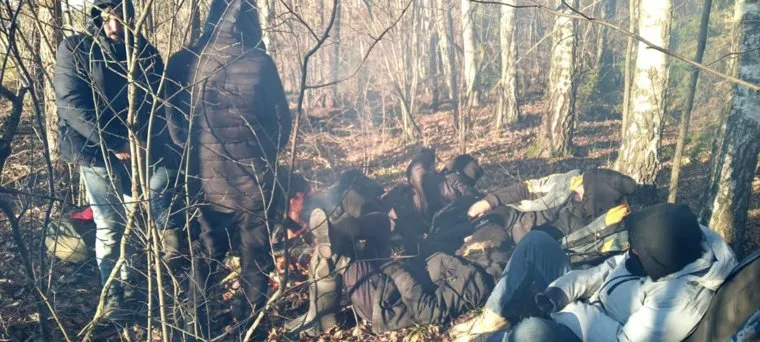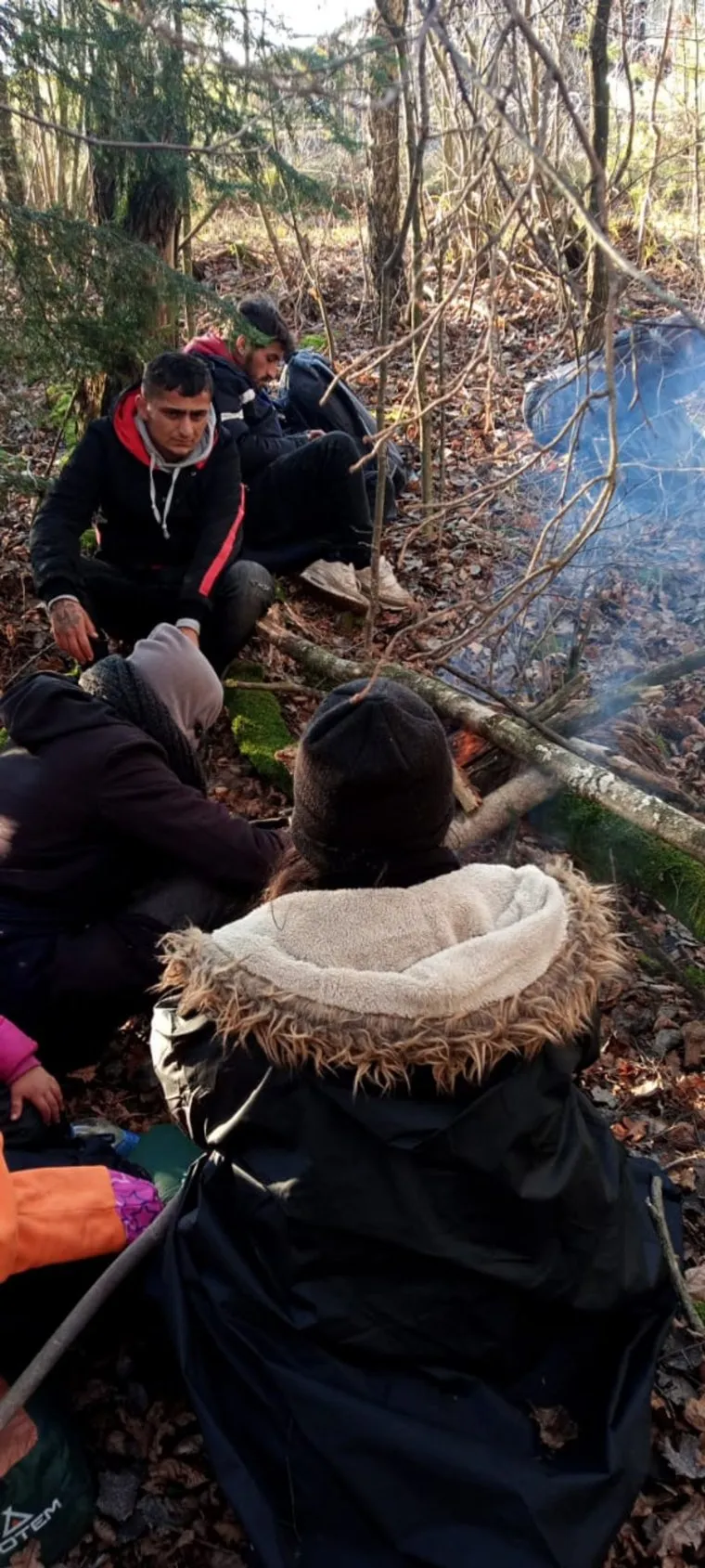 Беженцы в ноябре 2021 года в лесу на границе между Белоруссией и Польшей