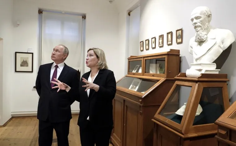 С обновленной экспозицией Московского дома Достоевского президента ознакомила министр культуры РФ Ольга Любимова