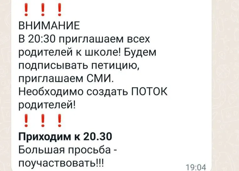 В родительских чатах распространяли такие призывы, на участвовать никого не заставляли