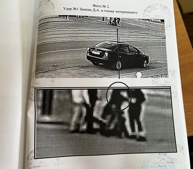 Как утверждает в показаниях сам Зыков, когда он оттащил одного участника драки от другого, ему кто-то попытался нанести удар, но промахнулся. Потом агрессию высказали четверо человек, после чего началась драка. Зубков пояснил, что он нанес потерпевшему удар ногой, чтобы он не смог встать и нанести удар его другу Зыкову, который защищался от нападавших. Удар был не сильный, так как ранее в драке Зубков упал и повредил левую ногу, поэтому не мог хорошо на нее опираться. Момент, где Зубков падает и встает действительно есть на видео.