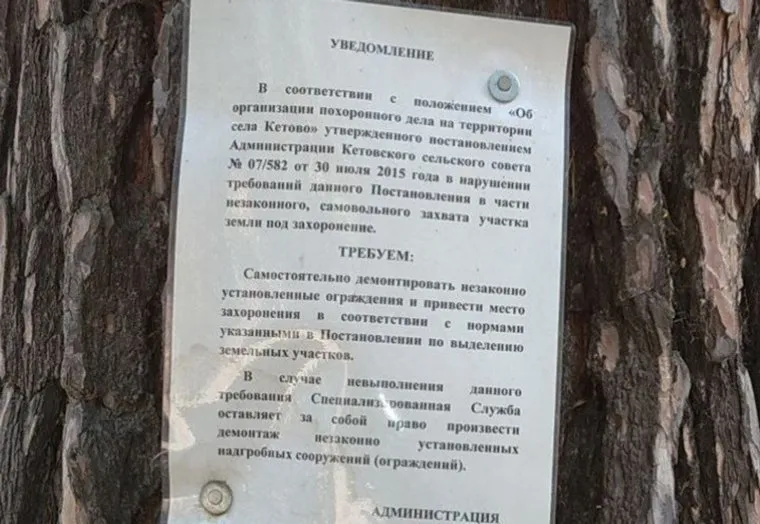 При этом о наличии попыток нелегальных захоронений намекает объявление, размещенное администрацией на кладбище. В нем указано требование убрать незаконно установленные ограждения. Если оно не будет выполнено, то специализированная служба сама их демонтирует.