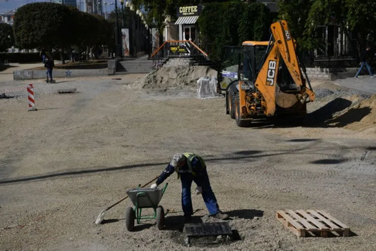 URA.RU также пообщалось с рабочими, которые трудятся на площадке. Сразу после Дня города они говорили, что о деталях с поставкой плитки ничего не знают, но изначально — когда только формировалась их бригада — заказчик давал понять: все продлится до середины сентября (вряд ли руководству города озвучивалось то же самое). За несколько дней дозвониться до бригадира — Макара Хокираева — корреспонденту ни разу не удалось.