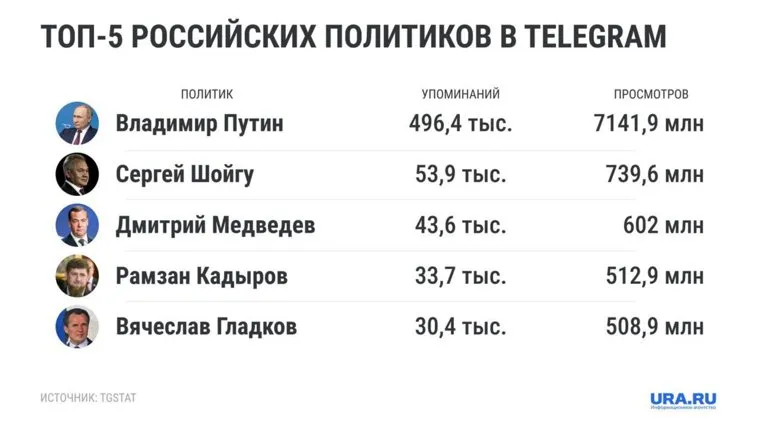 Вячеслав Гладков входит в топ-5 самых популярных политиков России в Telegram
