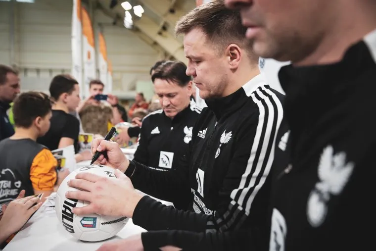 Звезды оставляли подписи на фотографиях и футбольных мячах