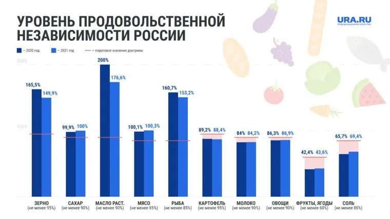 — Осенний сев в 2021 году, проведенный в срок, и климатические условия позволили получить хороший урожай озимых. Что касается сева яровых, то к концу февраля, когда началось введение санкций, уважающие себя сельхозпроизводители, как правило, уже готовы к посевной — закуплены семена, законтрактованы топливо и средства химизации, отремонтированы техника, готовы технологические помещения. Весенние полевые работы прошли штатно. Осенью получен рекордный урожай зерновых и зернобобовых общим объемом 154 млн тонн. Отличные результаты были по овощам, сахарной свекле и картофелю.
