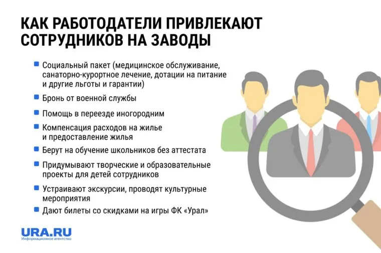 В сфере промышленности наблюдается серьезный дефицит кадров, при этом объемы производства растут — у кого-то за счет гособоронзаказа, у кого-то из-за ухода зарубежных конкурентов. Чтобы привлечь сотрудников, предприятия идут на разные уловки — предлагают обучение с дальнейшим трудоустройством и платят стипендии, оплачивают съем квартиры, снимают сериалы для ТВ и проводят экскурсии по Свердловской области. Подробнее об этом — в материале URA.RU.