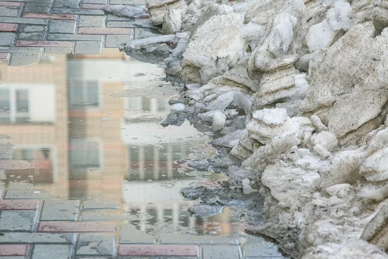 Снег, не вывезенный из дворов в Тарко-Сале, начал таять