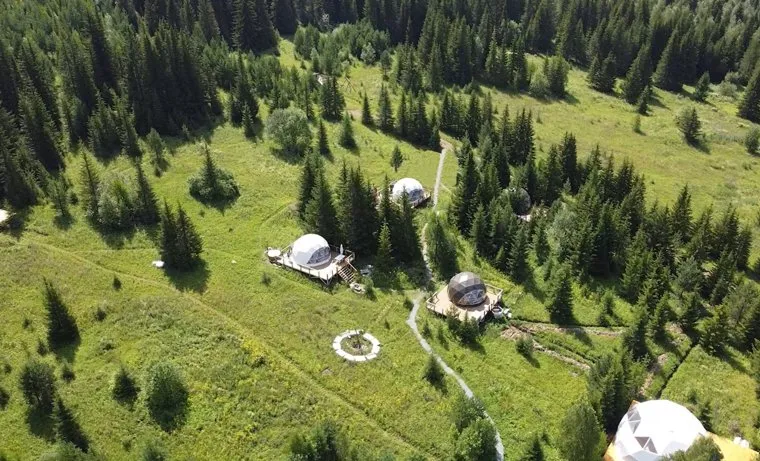 Тем, кто готов потратить больше времени на дорогу, но получить взамен потрясающие виды на уральский лес рядом с горой Белой, стоит обратить внимание на глэмпинг « ». В нем на выбор доступны пять купольных шатров: четыре на два человека с детьми и еще один на компанию до 20 гостей.