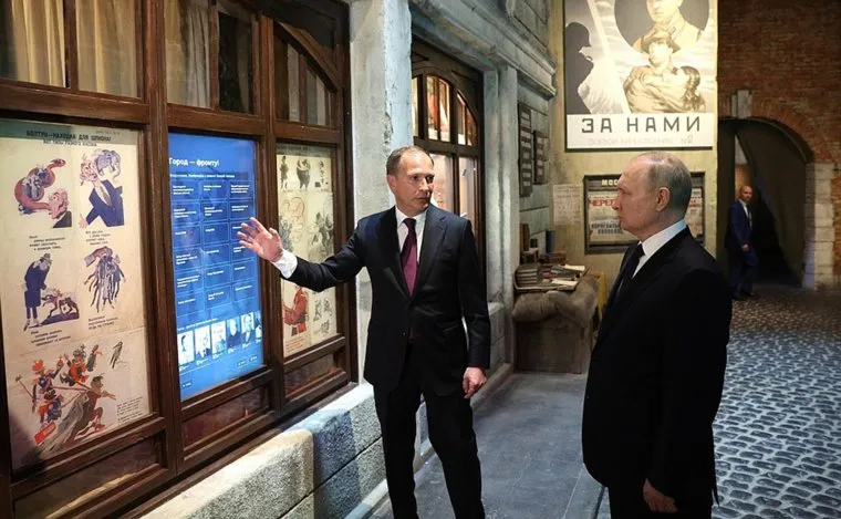 В Музее Победы на Поклонной горе президент РФ Владимир Путин зажег свечу памяти у монумента «Скорбящая мать» — собирательного образа всех женщин военного поколения, оплакивающих погибших мужей, детей, родителей