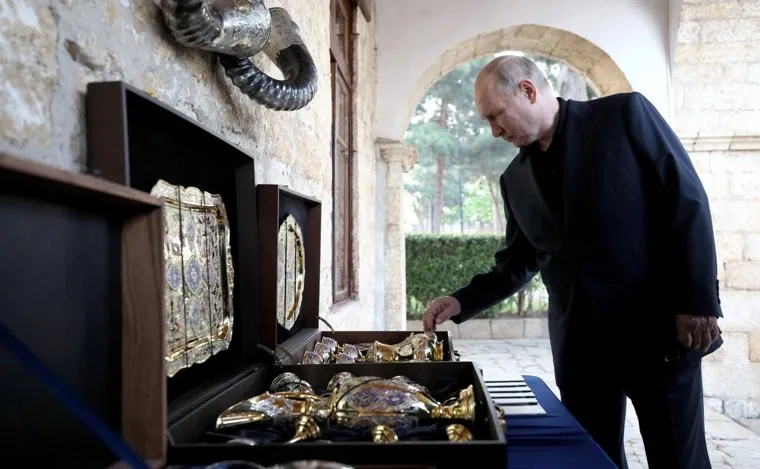 Президент РФ Владимир Путин осмотрел выставку народных промыслов в комплексе «Цитадель Нарын-Кала»