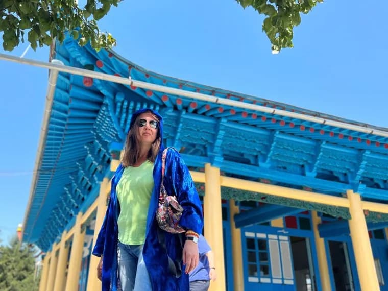 Дунганская мечеть известна тем, что построена в 1910 году зодчими из Пекина без единого гвоздя. На входе женщины по правилам должны надеть специальные накидки, покрывающие не только голову, но и все тело. Что интересно, это здание — часть большой истории: по замыслу главная мечеть, «голова дракона», построена в Пекине, в Караколе — «спина дракона», а «хвост дракона» находится в Казахстане. Мечеть удивительная и находится в прекрасном состоянии. И, конечно, на ее территории очень красиво.