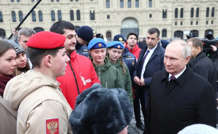 Президент кратко побеседовал с членами организаций. Представители «Юнармии» вручили президенту значок, который служит вечным символом братства и единения всех юнармейцев. Также глава государства получил «солдатский треугольник», которые отправляются бойцам СВО, чтобы помочь им морально. «Я знаю. Это очень важная вещь. Такая моральная поддержка людей, которые ежедневно рискуют своей жизнью. Это очень важно», — отметил президент.