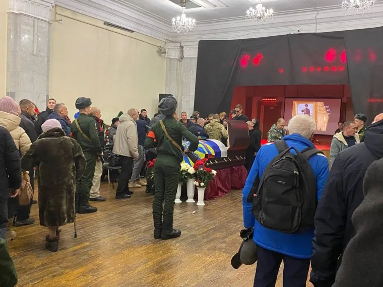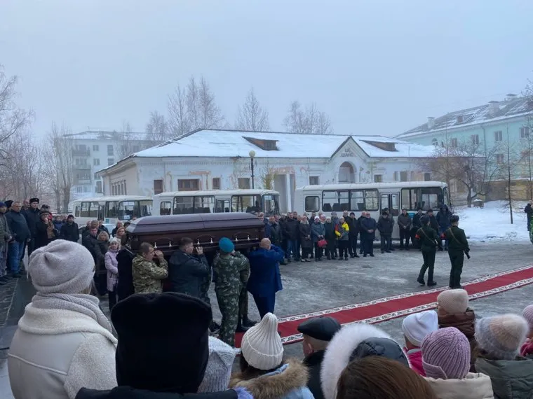 Люди стали собираться у городского Дворца культуры около десяти утра — то есть за час до траурной церемонии. Внутри здания у сцены стоял гроб, который по периметру обхватили солдаты-срочники. В числе первых, кто пришел на прощание, был врио военкома Краснотурьинска и Карпинска подполковник Ринат Шагиев — зам Чекасина. За ним пришла мама. Ее вел внук Валерий. Зайдя в помещение с гробом, женщина расплакалась. Валерий Чекасин тоже не сдерживал слез.
