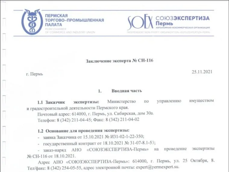 Экспертизу проводило АНО «Союзэкспертиза» при Пермской ТПП. АНО возглавляет председатель Общественной палаты Пермского края Лилия Ширяева.