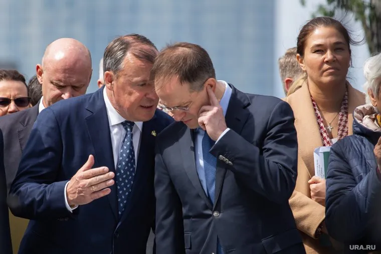 Cтелу «Город трудовой доблести» в центре Екатеринбурга открывали с помощником президента РФ Владимиром Мединским