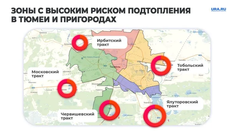 К зонам с повышенным риском подтопления относятся несколько популярных для частной застройки пригородов Тюмени. В частности, можно вложиться «в болото», покупая землю на Червишевском и Московском трактах, в районе деревень на Тобольском и Ялуторовском направлениях. Особое внимание риэлторы рекомендуют обращать на наличие вблизи района ИЖС водоемов — здесь грунтовые воды, как правило, подходит ближе к поверхности.