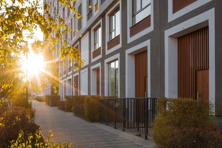 Для разработки проекта застройщик привлек голландское бюро. Проектировщики предусмотрели внутри жилых кварталов зеленые аллеи, игровые комплексы, спортивные площадки и просторные газоны с беседками-перголами — там в теплое время года можно устраивать пикники.