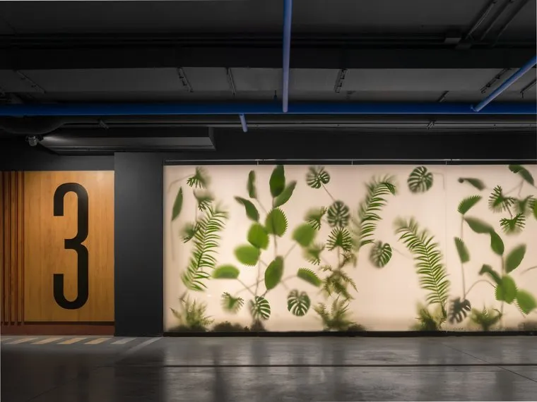 Дизайн паркинга, расположенного на минус первом этаже, перекликается с дизайном подъездов