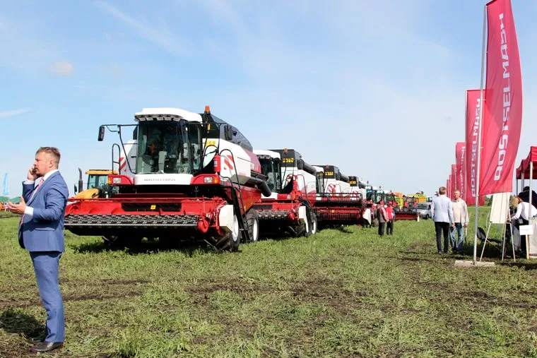На фото — колонна отечественных комбайнов «Ростсельмаш»