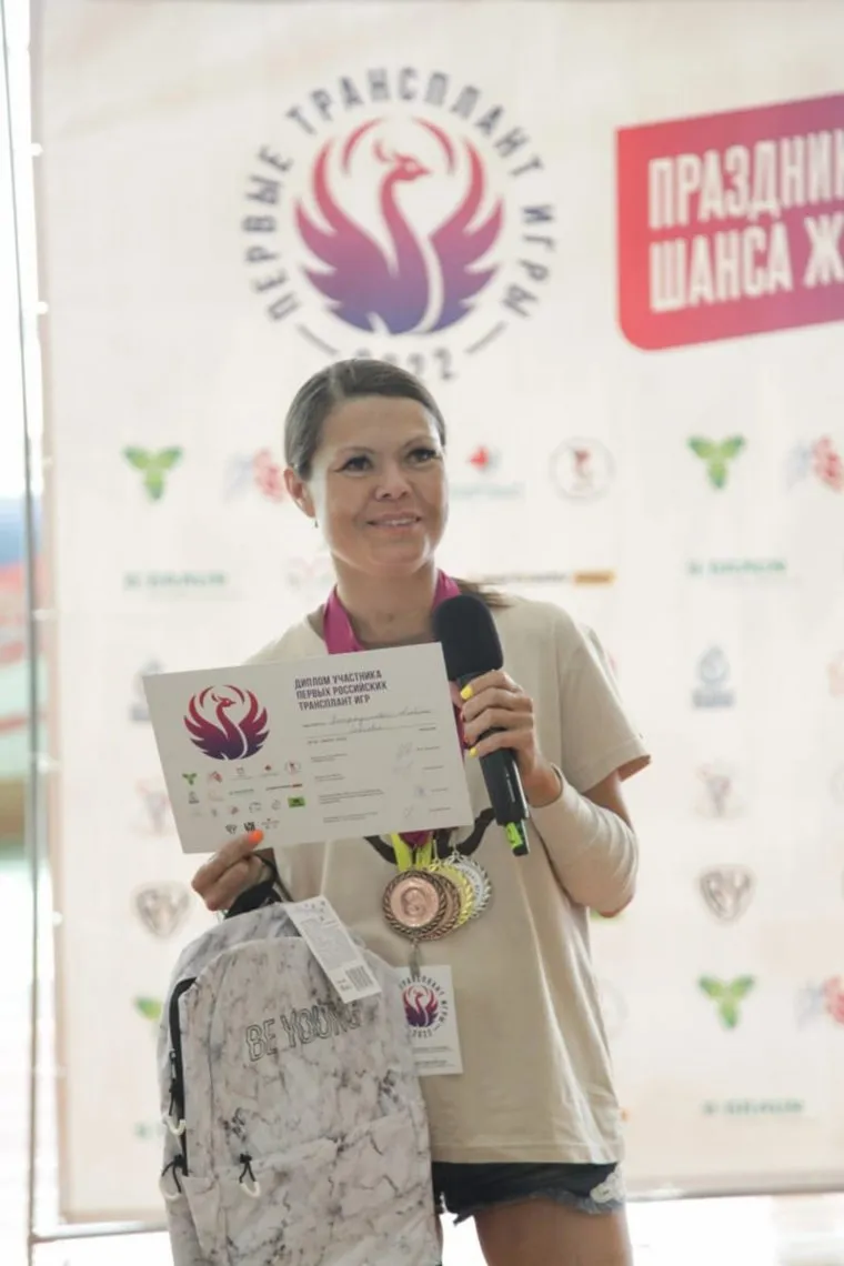 Альбина Хенсртдинова доказывает, что жизнь с тяжелым диагнозом может быть полноценной и активной. Два года назад она участвовала в первых трансплантиграх в Москве, где соревновалась по десяти видам спорта. «Было очень увлекательно. Эмоции были незабываемые. Приехала я призером: бег на 100 метров, дартс и настольный теннис — 3 место, бег на 1.6 км — 2 место, шахматы — 1 место». В прошлом году Альбина также участвовала во вторых трансплантиграх, где встретилась с пациентами из разных регионов и снова стала призером в нескольких дисциплинах.