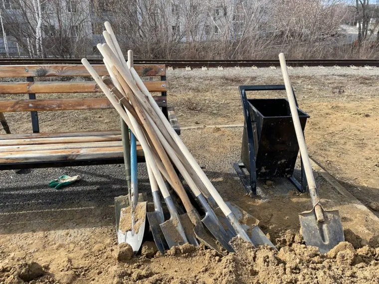 По всей набережной лопаты и другой инвентарь для желающих помочь с обустройством дамбы