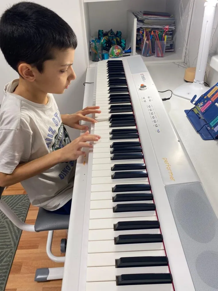 Около полутора лет назад Амир впервые попробовал играть на синтезаторе, который увидел у своего дедушки, и с тех пор с инструментом не расстается. «Я услышала, как сын играет мелодию из популярного мультфильма. Это было неожиданно и потрясающе, учитывая, что Амир почти не разговаривает. Я поделилась видео игры сына с педагогами, они единодушно признали его талант и посоветовали развивать его музыкальные способности. Первой была мелодия из мультика 'Акуленок', которую он воспроизвел безошибочно на слух, на тот момент, не зная нот».