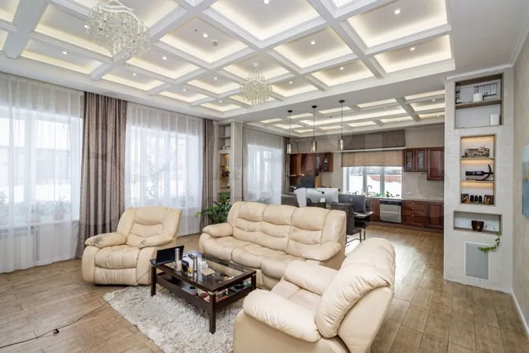 Замыкает подборку дизайнерский коттедж, который тоже находится в районе Сургута стоимостью в 43,5 миллиона рублей. На двух этажах, кроме жилых комнат, здесь обустроили, финскую сауну и спортзал. Весь дом управляется с помощью «умных» устройств, а рядом с коттеджем находится лес.