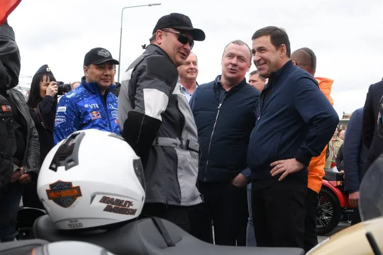 Первым из представителей местной власти появился мэр Екатеринбурга Алексей Орлов. Встретивший его Салихов провел небольшую экскурсию, а вскоре глава города и сам настолько освоился, что сел за руль сперва одного «харлея», затем другого. «Великолепно. Как будто в молодость попал», — поделился он впечатлениями. Когда вскоре приехал Куйвашев, уже Орлов по-хозяйски водил его между рядами мотоциклов. «Тюменцы вон приехали на трехколеснике», — указал он на Московских, и большая делегация — вместе с губернатором появились и его пиарщица Аксана Панова, глава «Сима-Ленда» Андрей Симановский, сенатор Виктор Шептий — двинулась к главному тюменскому прокурору.