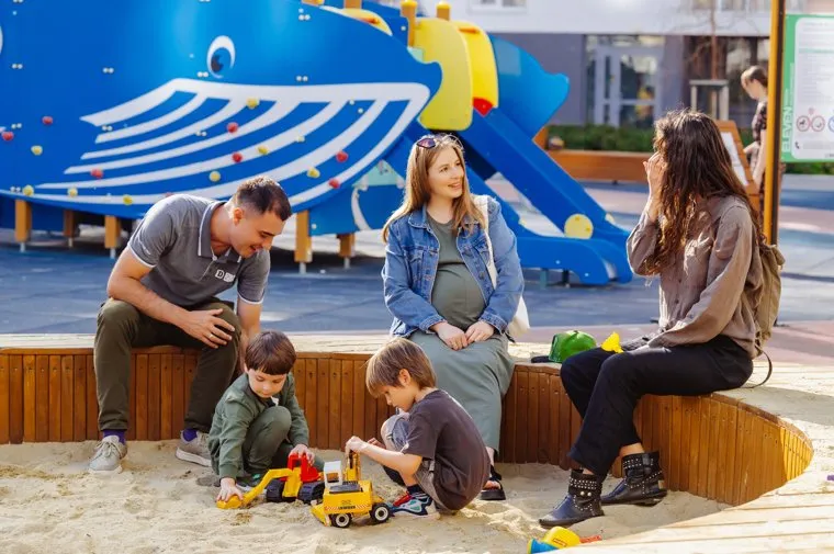 Наконец, еще один важнейший принцип площадок Академического, рассказывают представители девелопера, — это их открытость. То есть независимо от того, в каком квартале проживает семья, пользоваться детской инфраструктурой она может в любом: никаких ограждений нет. Как рассказывают сами академчане, они так и делают, каждый день формируя новый маршрут для прогулок с малышами.