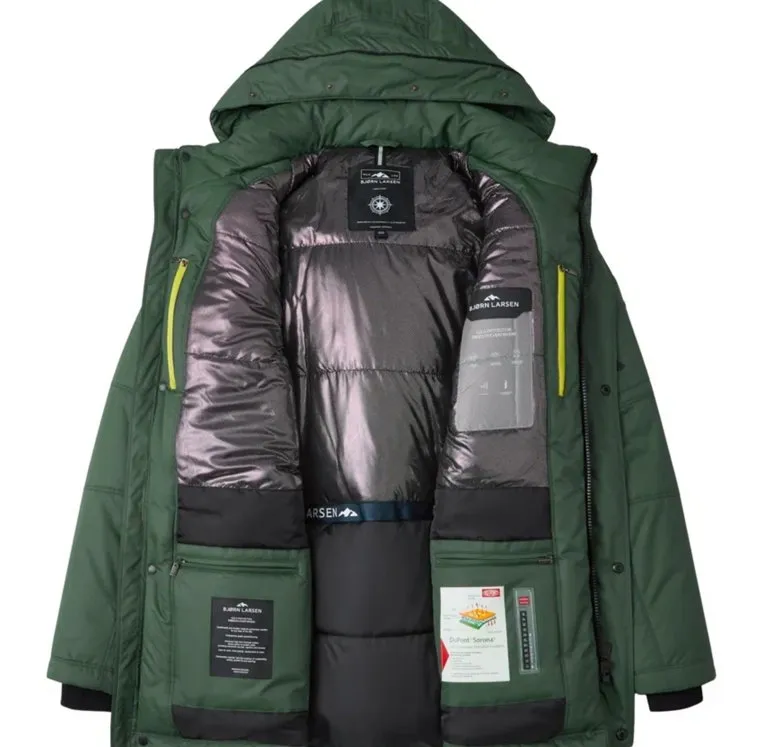 В преддверии зимы россиянам рассказали о куртках Bjorn Larsen, созданных с использованием инновационного материала. В качестве утеплителя в них используется DuPont Sorona — один из теплейших наполнителей, который защищает от 50-градусных морозов.