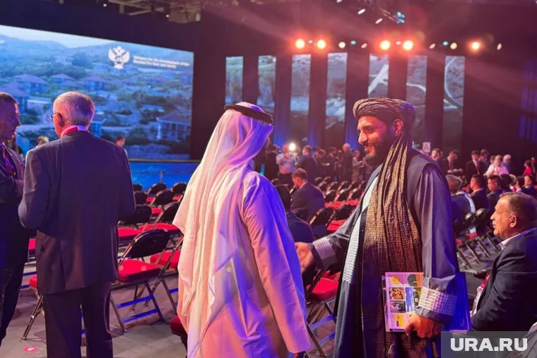 Самым популярным гостем из всех оказался делегат из Афганистана. Его коричнево-серый тюрбан был виден издалека. Головной убор эффектно дополняло платье в пол цвета слоновой кости. Несмотря на свой суровый вид, афганец никому не отказывал в фото, однако уже ближе к началу «пленарки» стало заметно, что излишнее внимание стало его утомлять.