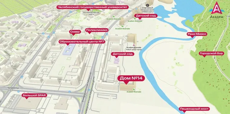 Жилой комплекс комфорт-класса « находится недалеко от реки Миасс на Университетской набережной. Группа компаний «Магнитострой» формирует в нем экосистему комфортной жизни для жителей. В шаговой доступности есть вся необходимая инфраструктура: детские сады, поликлиники, места для семейного отдыха и досуга, супермаркеты и аптеки. «Это комплексный подход, который получает наш клиент, приобретая жилье у нас. В проектировании домов мы всегда исходим из потребностей и удобства покупателей», — подчеркивает пресс-служба застройщика.