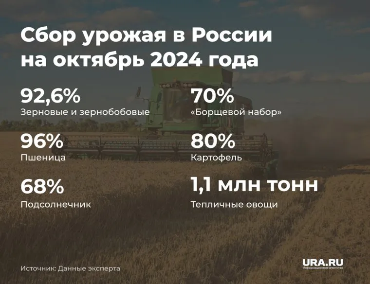 - Посевная площадь под яровые зерновые и зернобобовые культуры в этом году составила 47,9 млн гектаров. На 11 октября из них было убрано 44,3 млн, что соответствует 92,6% от общей площади. Это немного превышает показатели прошлого года. Намолочено при этом 122 млн тонн зерна. Для сравнения, на эту дату в прошлом году было собрано на 15 млн больше. Полагаю, что к концу кампании прибавится еще около 3 млн тонн. По пшенице посевная площадь составляет 29,8 млн гектаров, убрано 28,7 млн или около 96%. Опять же чуть меньше, чем в прошлом году, но не критично. Намолочено 85,6 млн тонн, в 2023-м на эту дату было 95,6 млн. По гречихе намолочено больше, чем в прошлом году, почти 1 млн тонн — 995 тысяч. Ее больше посеяно и убрано, потеря урожайности тоже небольшая. Поэтому, с гречихой можно сказать, что все нормально.