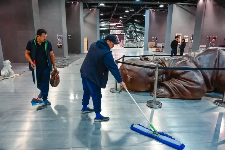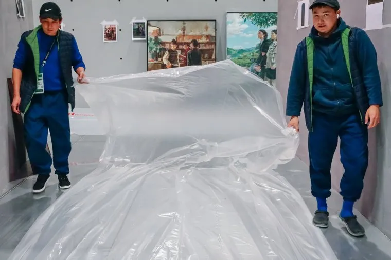Первый крупный проект центра — выставка «Наследие для будущего», рассказывающая об идее многонационального диалога и будущем мира с фокусом на человека, передает с места событий корреспондент URA.RU. Еще 12 дней назад закрадывались легкие сомнения, успеют ли доделать ремонт в срок: большую часть занимали строительные леса и доски, провода. Сейчас же картинка начинает складываться в единый образ. Осталось сделать несколько косметических доделок, убрать пленку с полов и пустые коробки.