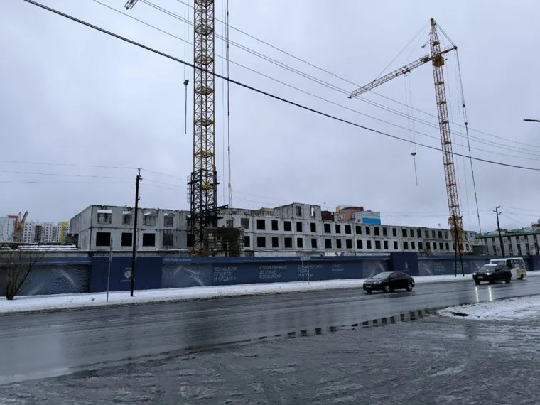 Собеседник прислал фото, сделанные в начале ноября 2024 года. На сайте застройщика опубликован прогресс строительства. Для сравнения, еще в сентябре это крыло было втрое выше. К ноябрю от этой части здания осталось всего два этажа из семи. Сургутяне отмечают, что на стройке продолжается «отрицательный рост», и здание за неделю стало еще ниже.