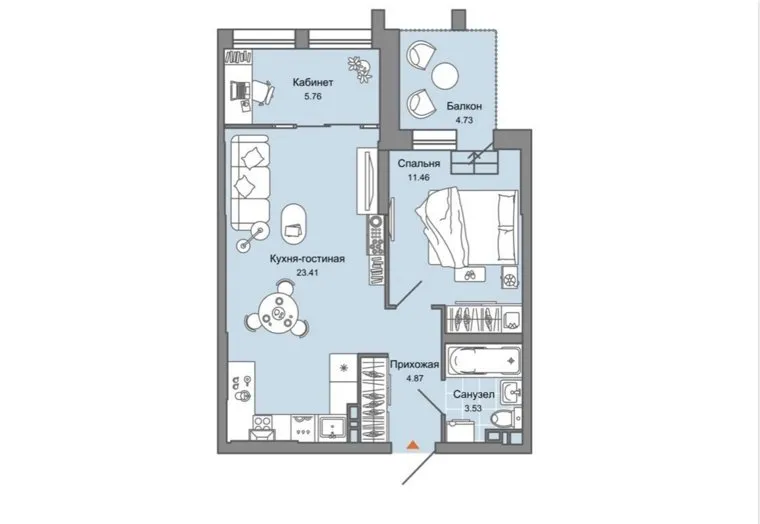 Двухкомнатная квартира площадью 53 кв. м максимально функциональна: здесь есть место даже под рабочий кабинет