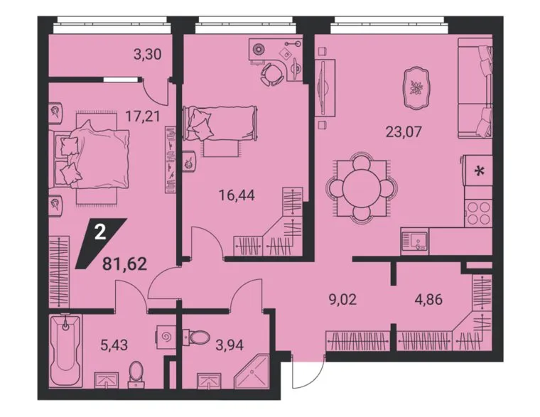 - двухкомнатная евроформата (58-79 квадратных метра): от 7,8 млн рублей;